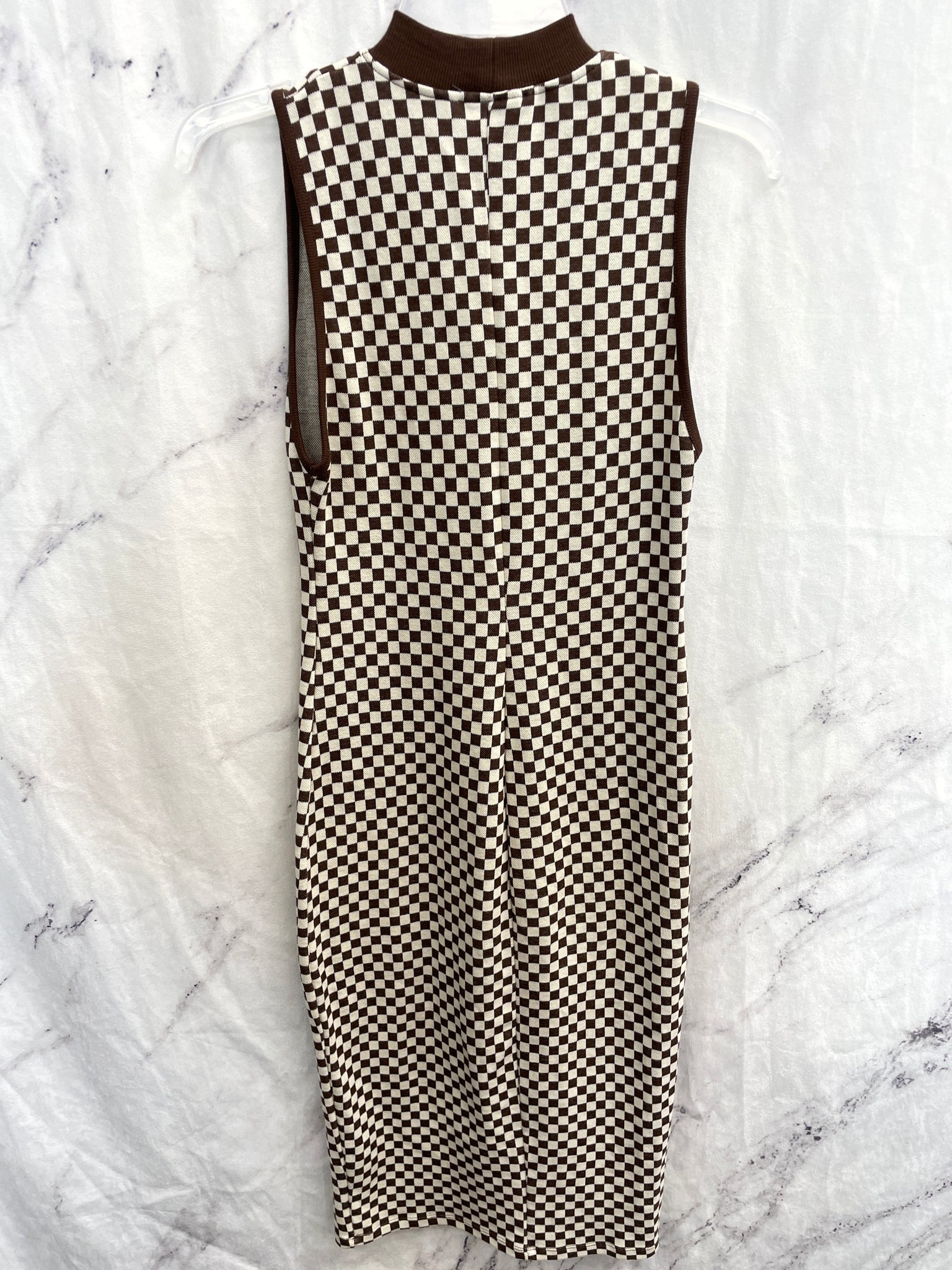 Zara Brown/White Checkered Print Long Dress- Small